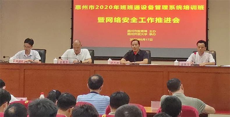 9月17-18日,由惠州市教育局主办、惠州开放大学承办的惠州市2020年班班通设备管理系统培训班暨网络安全工作推进会在惠州开放大学多功能报告厅顺利举行。来自教育系统网络安全管理相关人员和全市中小学校的近600名信息技术骨干教师参加了此次培训。惠州市教育局副局长邓凡用、惠州开放大学副校长吴希东和市教育局电教站负责人梁惠专出席了开班仪式。